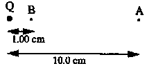 C3. A point charge, Q = +2.50 × 10-12 C, is fixed in space. Point A is 10.0 cm from Q and point B is 1.00 cm from Q.