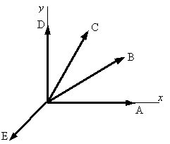 A3. An object is acted upon by two and only two forces. Force 1 acts in the +x direction and force 2 acts in the +y direction. The magnitude of force 1 is greater than the magnitude of force 2. Which of the vectors shown in the diagram best represents the direction of the acceleration of the object? |