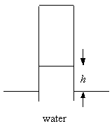 B4. A pipe, closed at one end, is held vertically with its open end submerged in a pool of water as shown in the diagram. If the air pressure in the pipe is reduced to one-quarter that of atmospheric pressure, to what height, h, will water rise in the pipe? (atmospheric pressure = 1.01 ´ 105 Pa, density of water = 1.00 ´ 103 kg/m3)